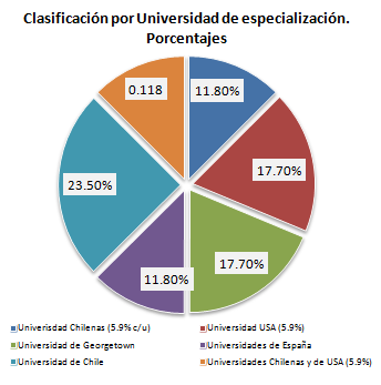 La mayoría de Tecnopols contaron con un grado de especialización universitaria. Del total , un 23.5% había obtenido su especialización en la Universidad de Chile. De este porcentaje la mitad se especializó en medicina y cerca de un 25% en gestión.